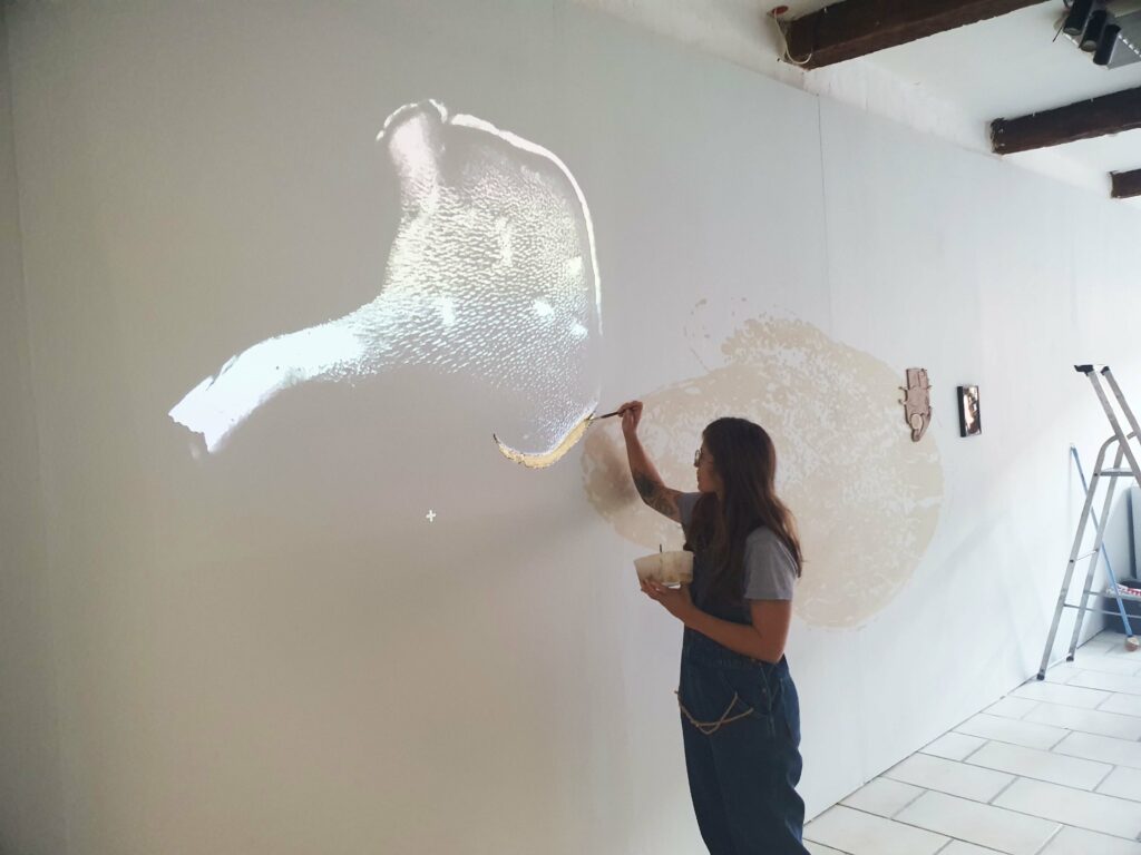 Dans ma pratique, les matières se croisent en fonction des contextes, et des ressources à ma portée, sans hiérarchie. Ce que l’on voit dans la galerie, au Carla-Bayle, est le reflet de ce goût pour la transversalité. On trouve du minéral, du végétal, de l’animal, et des champignons, formes vivantes qui se situent en dehors de ces classifications.