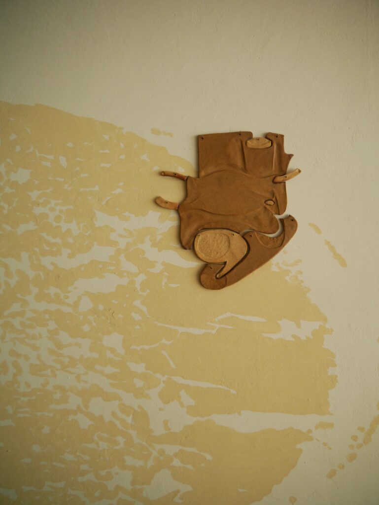 Et peut-être, aussi, demander un peu d’aide à Célie Falières car on comprend vite qu’elle cherche à entraîner les regardeur.ses dans des correspondances dont les règles sont versatiles. S’agit-il d’un rébus (mot que Célie emploie souvent pour évoquer ses installations) ? Ou un puzzle dont les pièces ne s’adaptent pas exactement ? Finalement, le terme de « jeu de piste(s) » est peut-être ce qui peut le mieux définir ce que les visiteur.ses, un moment transformé en explorateur.ices, vont trouver dans la Galerie du Philosophe.